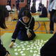 昼食後は、体験学習のためにたくみの里へ。マイクロバスで移動しました。たくみの里では2つの体験を行いましたが、体験まで少し時間があったのでここでも少し雪遊びをしました。 藍染体験 見本の絵柄から好きな柄を選び、手ぬぐいを染めていきました。三角形に折られた手ぬぐいを藍染の先生の指示に従って30秒間染めました。絵柄によって何度か染める工程を繰り返し、手ぬぐいを広げると万華鏡のようなきれいな模様に染まった手ぬぐいになりました。空気に触れるときれいな藍色に徐々に変化していくところもきれいに感じました。みんなで記念写真を撮り、作品は持ち帰ることができました。3日間は洗わず乾燥させてから洗うとよいそうです。 座繰り体験 明治時代に使われていた座繰り機で煮出した繭から糸を挽き、巻いた糸車に飾り付けや絵付けをする体験です。(蚕・繭・絹の家工房ホームページより) 体験はステンシルタイプの色彩方法で制作していきました。準備された絵柄を選んで色付けをしました。絵付けが終わった後には、実際に座繰り機を回す体験もしました。おおよそ15個の繭から細い糸を取り出し束ねて1本の糸にして巻いていく様子を実際に見ることができました。