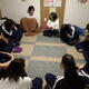 旅館での夕食 夕食はご飯やお水を配膳したり固形燃料にチャッカマンで火をつけたりとみんなで準備をしました。食事係の生徒がコップを持って乾杯ではなく「いただきます!」という笑顔になってしまう挨拶で食事が始まりました。みんなで会話しながら食べていましたが、品数がとても多かったため時間が足りなく全部食べきることができませんでした。明日は今日よりも夕食時間が少し長いのでいっぱい食べてほしいと願っています。 文化交流 昼食で利用したまんてん星の湯の敷地内に三国館という多目的ホールがあり、そこでお神楽と三国太鼓を鑑賞しました。2000年の噴火で秋川高校での生活が始まったときから続いている文化交流で、旅館に飾られている歴代の三宅中学校2年生がお礼に書いた色紙にも、三国太鼓の写真が貼られていました。お神楽は群馬県の太々神楽で、恵比寿様が鯛を釣る非常に人気のあるおめでたい演目でした。三国太鼓はオリジナルの演奏と太鼓の体験をしました。文化交流から戻ってきて最後は仁田屋の前で写真を撮りました。体調は今日もみんな元気です。