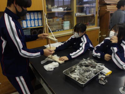 この作業が生徒たちにとってはなかなか難しいようで、先生方の手本やアドバイスを基に