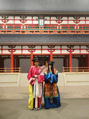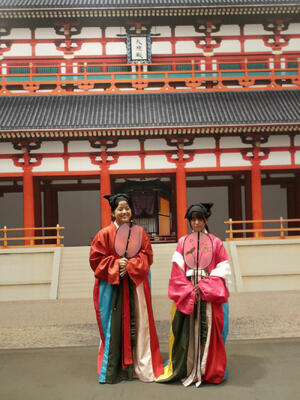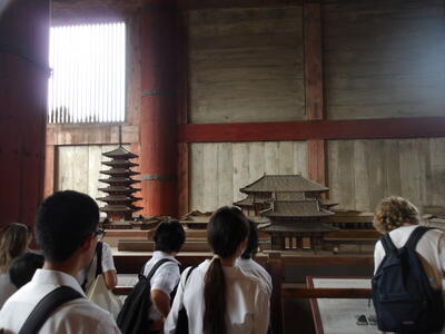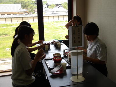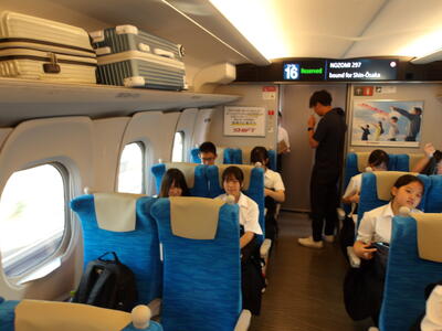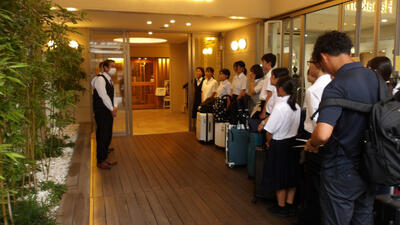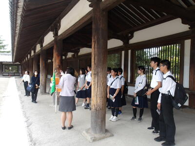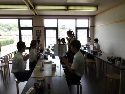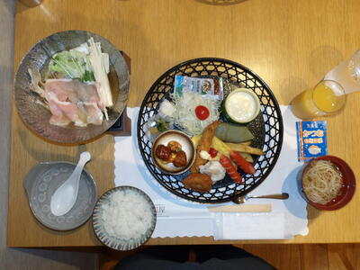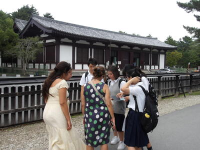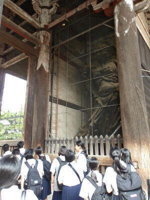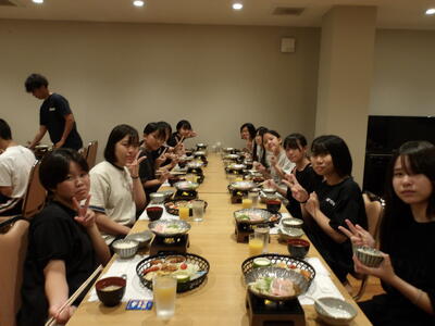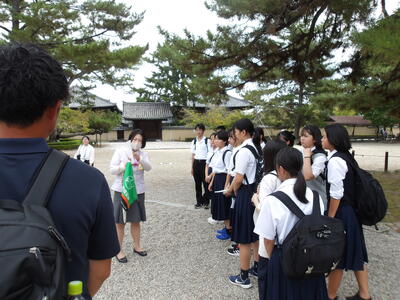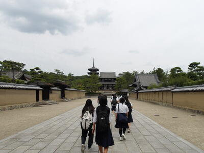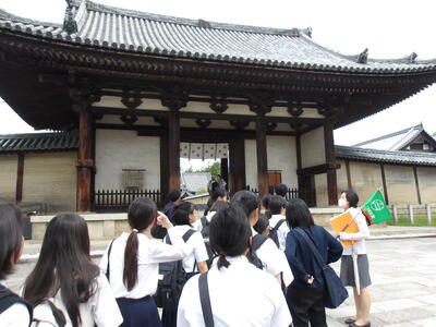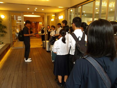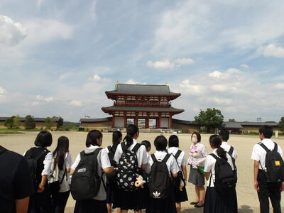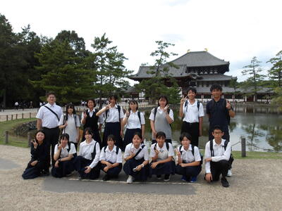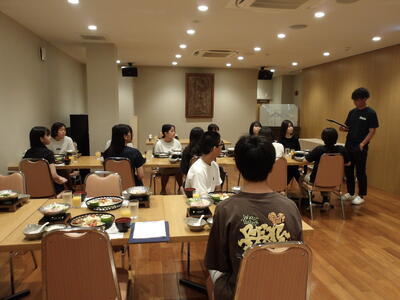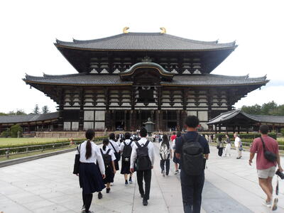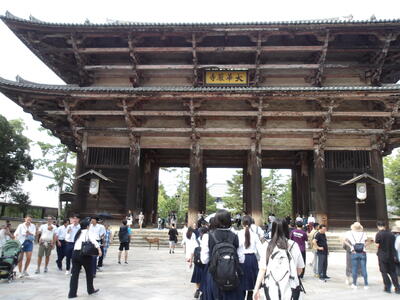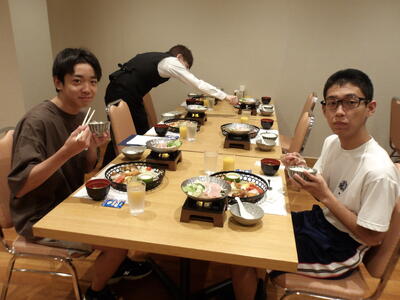 夕食はホテル1階にあるレストランでの食事でした。メニューは食べやすいものばかりで、奈良の名産柿の葉寿司もありました。歩き疲れた後の食事だったので体調が心配でしたが、会話や笑顔がたえない食事になりました。明日の起床は6:30です。今日の朝より遅いので、少し体も休めてほしいと思います。今日も1日怪我もなく無事に終えることができました。