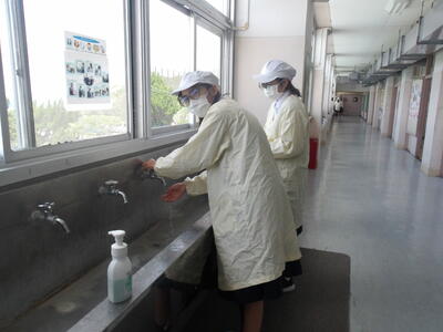 6月3日(火)から生徒会主催の「挑戦月間」がスタートしています。今日は、保健給食委員会が挑戦月間で行っている取組を報告します。保健給食委員会の取組は、給食検定を実施します。これは、準備と片付けの時間のチェックと残飯のチェックを行う取組です。