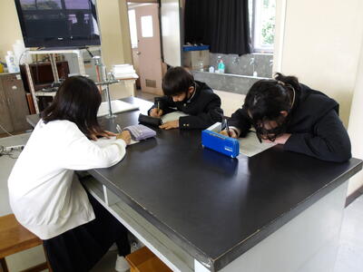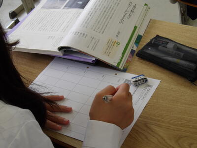 「植物のはたらきについて調べる実験について」プリント上で考えながら問題を解いていきました。最後にグループ活動を行いましたが、個人で取り組み導き出した解答をお互いに確認し合いながら葉の蒸散量について考察しました。次回は、今日の授業の続きです。