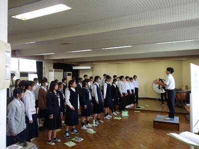 月曜日の1時間目ということもあり、大きな声が出にくい中での練習でしたが、次につながる合同練習になったと思います。本番まで残り2週間。歌詞をきちんと覚えること、そして、体調管理に気を付けて生活しましょう。