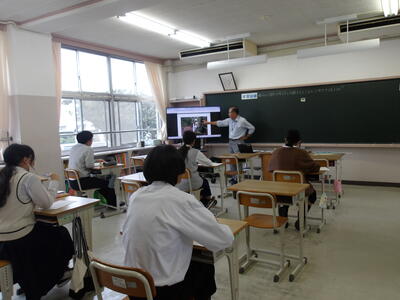 今日の授業は生物分野最後の授業で、「自然環境の調査と保全」についてです。今日は、各班テーマを決めて調べてきた内容についてスライドを使用して発表しました。各班のテーマは「地球温暖化」「異常気象」「水質汚染」「外来生物」で、それぞれ、問題・原因・改善策について発表しました。
