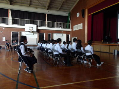 最後に生徒から「公衆電話は緊急時に制限時間はあるのですか」と質問がありましたが、公衆電話の赤いボタンを押すと110番、119番にテレフォンカードやお金がなくてもかけられることを教えてもらいました。お忙しい中、NTT東日本の職員の皆様ありがとうございました。