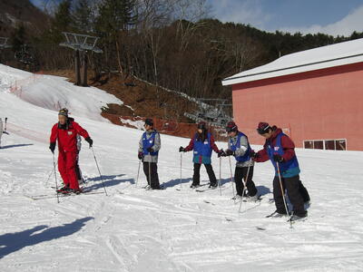 後半の練習は、前半と同じく2グループに分かれて行いました。後半の練習は、右ターン左ターンと繰り返しターンをする練習をしました。生徒はどんどん上手になり、インストラクターの先生が明日はみんなリフトに乗れると話していました。途中雪がちらつくこともありましたが、太陽の日差しを感じながら1日を過ごすことができました。