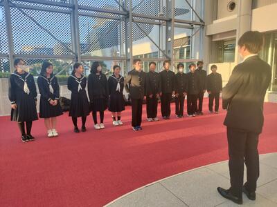 今日の午前中はJICA地球ひろばで国際理解学習を行います。出発前に島嶼会館ロビーでパシャリ!