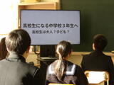 本日の道徳科の授業では、「高校生になる中学3年生へ 高校生は大人? それとも子供?」をテーマに学習を行いました。今回はディベート形式を取り入れ、「大人」と「子供」の立場に分かれて意見を交わしました。班分けでは、必ずしも自分自身の考えと同じ立場になるとは限らず、あえて異なる立場で意見を考える生徒もいました。大人側の意見としては、18歳で成人となることや、免許の取得が可能になること、義務教育が終了すること、高校生から働くことができる点などが挙げられました。一方、子供側からは、18歳未満は未成年であることや、親に養ってもらっていること、人生経験がまだ少ないことなどの意見が出されました。それぞれの立場から理由を考え、意見を述べ合う中で、「大人」「子供」という区分を多角的に捉え、自分自身の成長やこれからの在り方について考える姿が見られました。