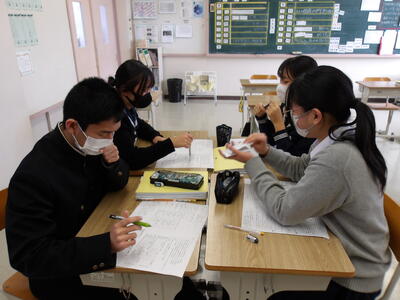 2月9日(月)今日の授業風景 投稿: 校長 (02/09) カテゴリー: 授業の様子 今日の授業は、円高と円安について学ぶでした。外国通貨の交換比率の説明では、156.78など小数点以下の数字は「銭」という単位が使われているという先生の説明に「今、「銭」を使っていないのにどうして?」という声があるなど、授業に集中して取り組んでいる様子も見られました。円高と円安の覚え方は簡単なようで難しいため、授業の後半にはグループで円高・円安ゲームをして理解を深めました。 (写真は、3年1組・社会の授業の様子です) Tweet -