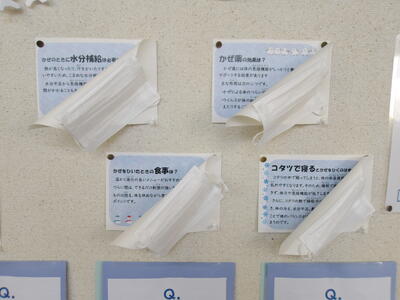 2月10日(火)保健室前の掲示板 投稿: 校長 (02/10) カテゴリー: 今日の出来事 保健室前の掲示板は、本校養護教諭が「今生徒に伝えたいこと」を定期的に更新してくれています。今回は、「風邪の予防について」です。風邪の予防や風邪をひいたときどうしたらよいのか?ちょっと疑問に思うことが解決できる掲示物になっています。寒さも続いていますので、風邪をひかないように、足を止めてみ見てもらいたいと思っています。保護者の皆様もご来校の際にはぜひご覧ください。 Tweet -