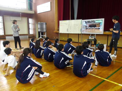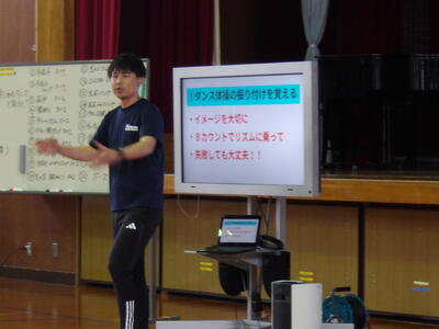 今日の保健体育の授業は、全7時間のダンスの授業の1時間目でした。今日の目標は「踊る人も見ている人も楽しめるダンスを踊ろう」でした。今日は、ダンスの授業の始めに行うウォーミングアップのためのダンス体操を学習しました。まず初めに楽しそうに見えるダンスはどのようなダンスなのかみんなで考えました。「声や表情が違う」「動きが大きい」など生徒から意見がでていました。その後、振り付けを覚える個別学習、そして、ダンスリーダーを中心にグループ学習を行いました。次回は、振り付けを覚える授業の続きです。