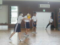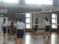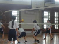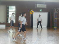 本日の体育の授業では、バレーボールに取り組みました。バレーボール部の部員が多いこともあり、生徒たちが主体となって練習を進めていました。