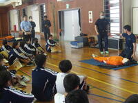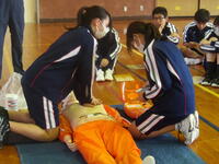 学年ごとに分かれて実技指導を受け、心肺蘇生法やAEDの使い方について、丁寧にご指導いただきました。