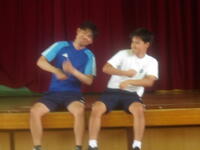 生徒たちは実際に3分ほど体を動かし、ストレッチなどで眠気を吹き飛ばしました。