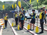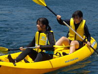 今日はシーカヤック体験を行いました。昨年度は天候不良で実施できなかったため、初めての体験でした。講師の方からは、パドルの持ち方や、カヤックへの乗り方などの基礎的なことから丁寧に教えていただきました。海に入ると、ペアで声をかけ合いながら、協力してカヤックを漕ぐことができました。三宅島の海の素晴らしさを体感することができました。