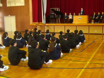 話を聞いて1年生は、この後、委員会決めを行めることになります。クラブ活動も明日から体験入会が始まります。体験期間を有効につかって3年間頑張りたいクラブを決めてほしいと思います。