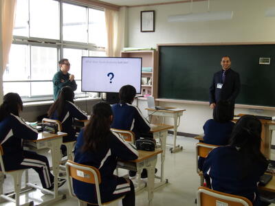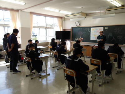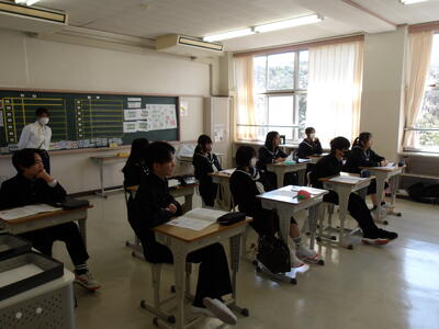 5時間目に対面式を行いました。生徒会役員が中心となって運営し、1年生を歓迎するために行われる式です。三宅中学校の行事や学校生活についての話、各委員長から委員会の取組内容についての話、そして、各クラブ活動の紹介を部長・顧問の先生が話しました。