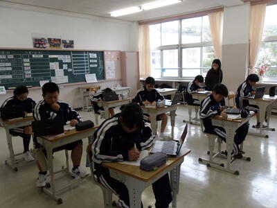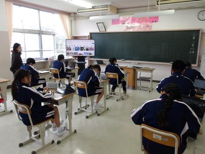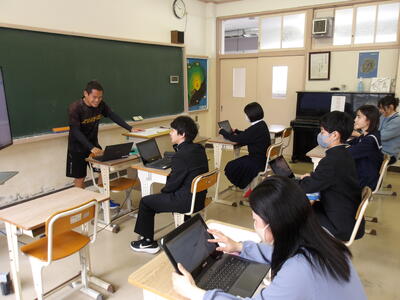 いよいよ全学年教科の授業が始まりました。3時間目の1年生は国語の授業を行いました。俳句と短歌を創作する授業で、生徒はクロームブックで調べながら創作していました。2年生は理科の授業です。理科の見方・考え方を科学的に探究するとはどういうことなのかを目標に動画をみて、生徒一人一人が考察をしていました。3年生は英語の授業です。新しいALTと一緒にオーストラリアについて英語で対話をしていました。