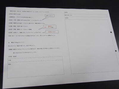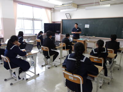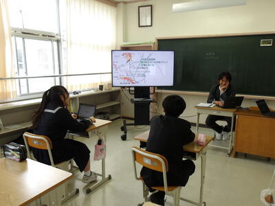 今日の6時間目は、避難の基本についての学習と避難経路の確認を行いました。その後、地区班に分かれて避難所の確認や津波ハザードマップの確認を行い、来週4月15日に行う小中合同避難訓練で、小学生に避難所の説明をするためのスライドづくりをしました。今回の授業の後半では、最上級生の3年生が中心となって進めていて頼もしく感じました。